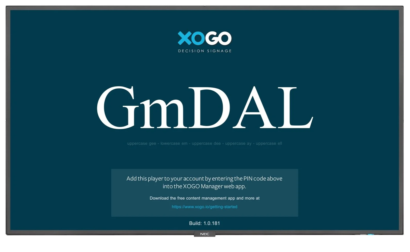Other Devices: XOGO Player is available for free on many operating systems. Simply download XOGO Player on the device that you want to use as a media player. Then connect your device to the Internet and open the XOGO Player app. You will see our logo and a PIN code like the one above.