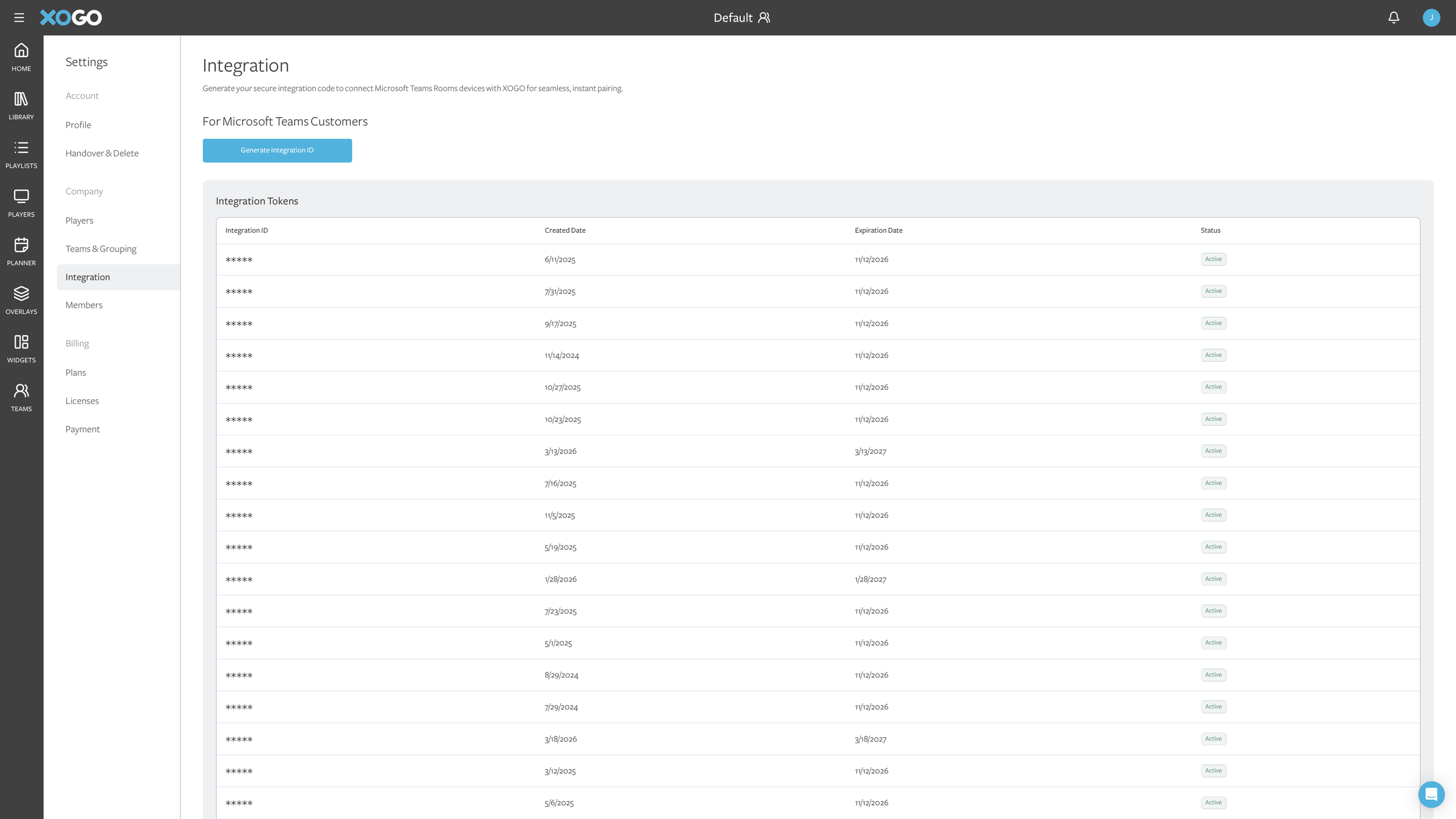 Click the blue button to generate your integration ID for Microsoft Teams Rooms. Copy this integration ID to your clipboard.